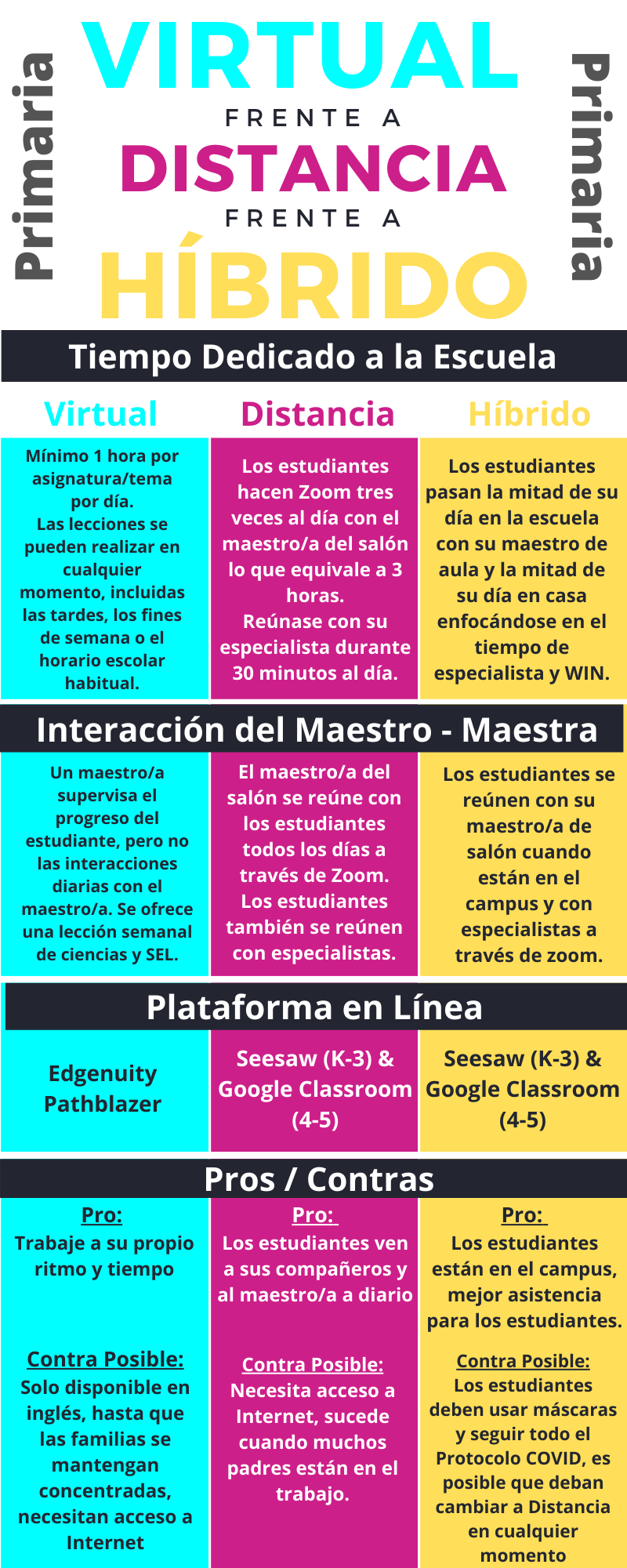 Para obtener más información sobre los modelos de aprendizaje para el año escolar 2020-2021, visite los enlaces a continuación: